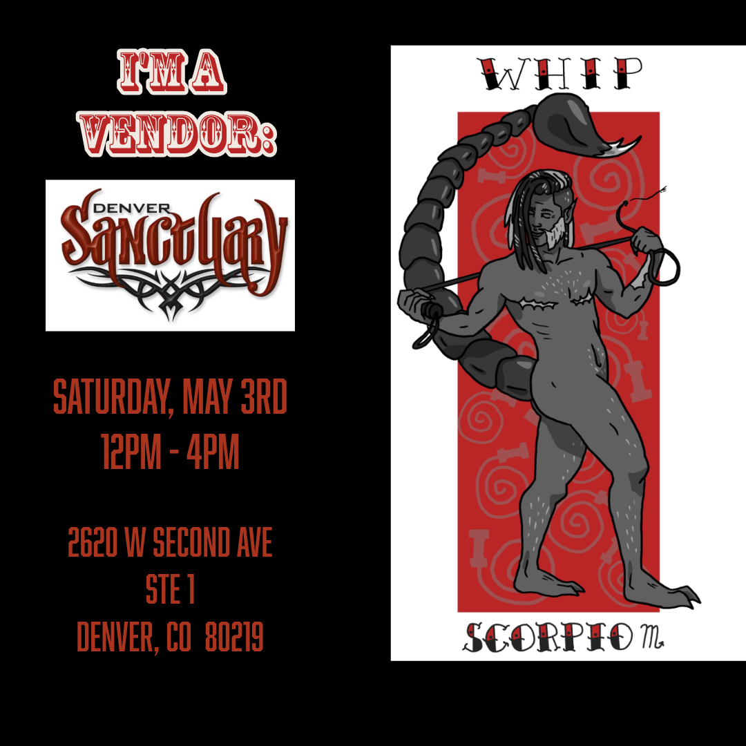 There will be other kink/bdsm vendors who make all sorts of goods such as leather gear, impact toys, restraints, collars, adult toys, sensory tools, art, stickers, pins, and much more!
